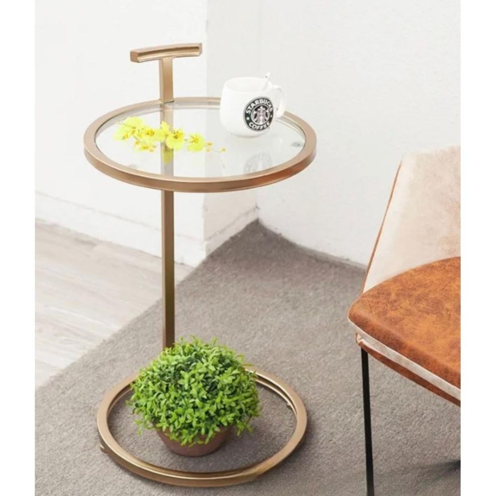 طاولة جانبية زجاج شفاف و ستيل ذهبي - 35×35×55 سم